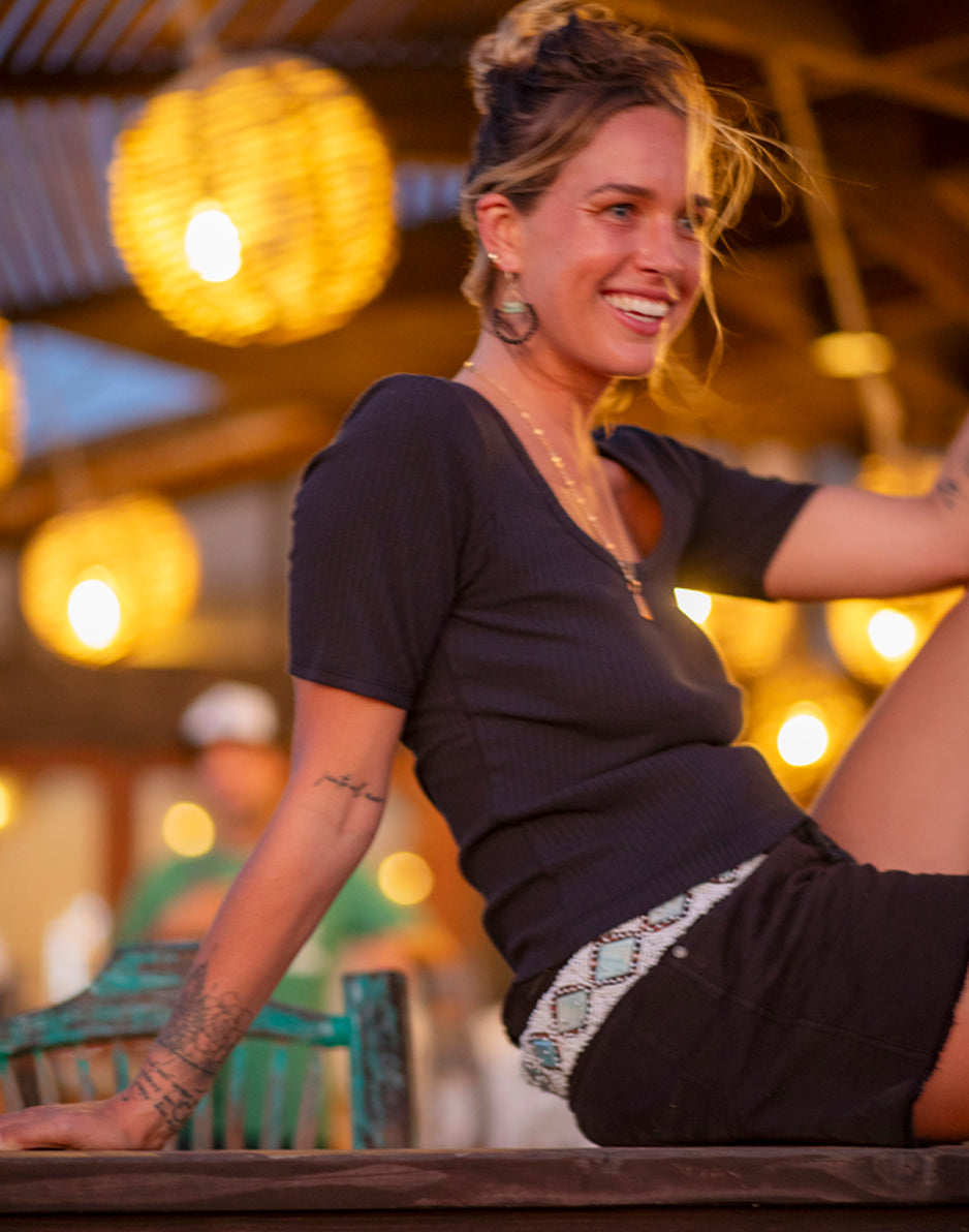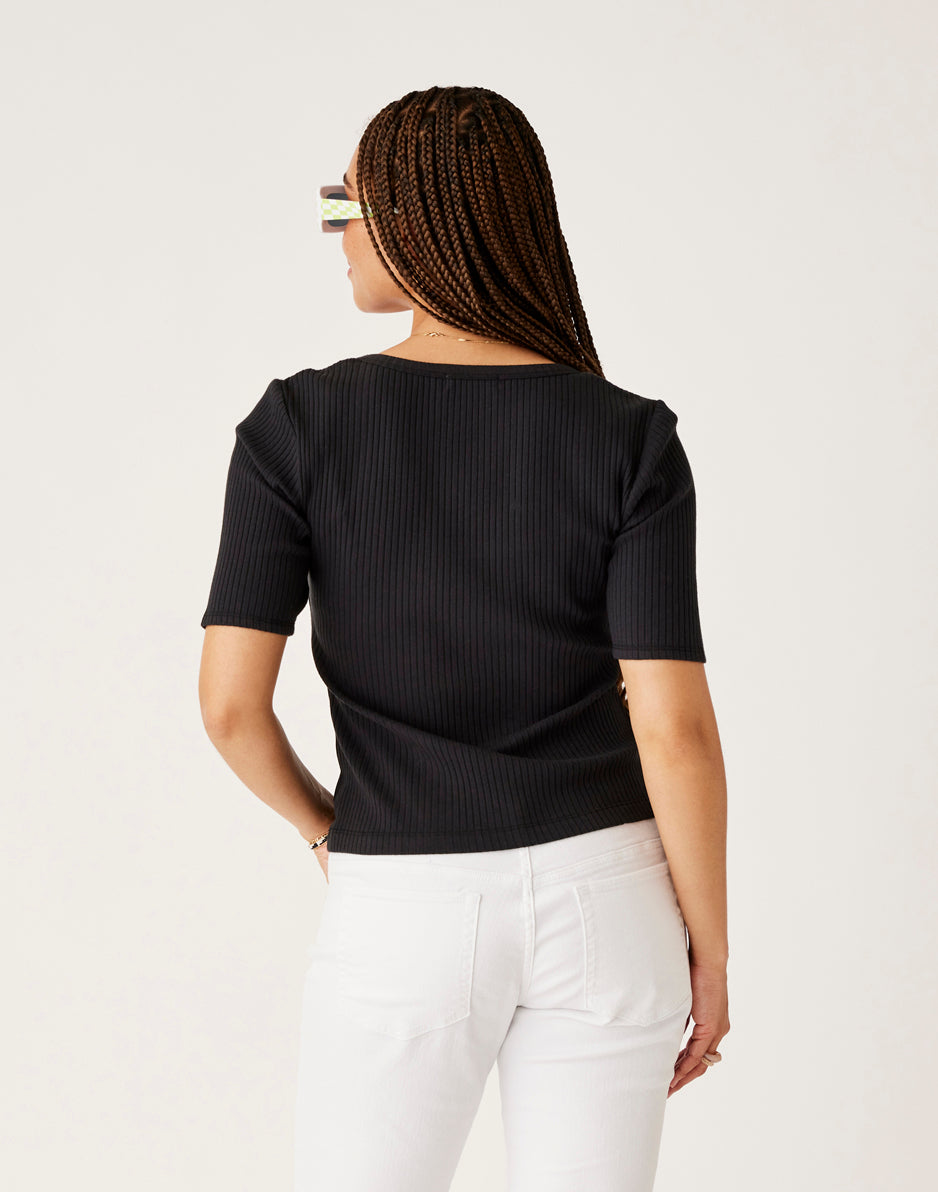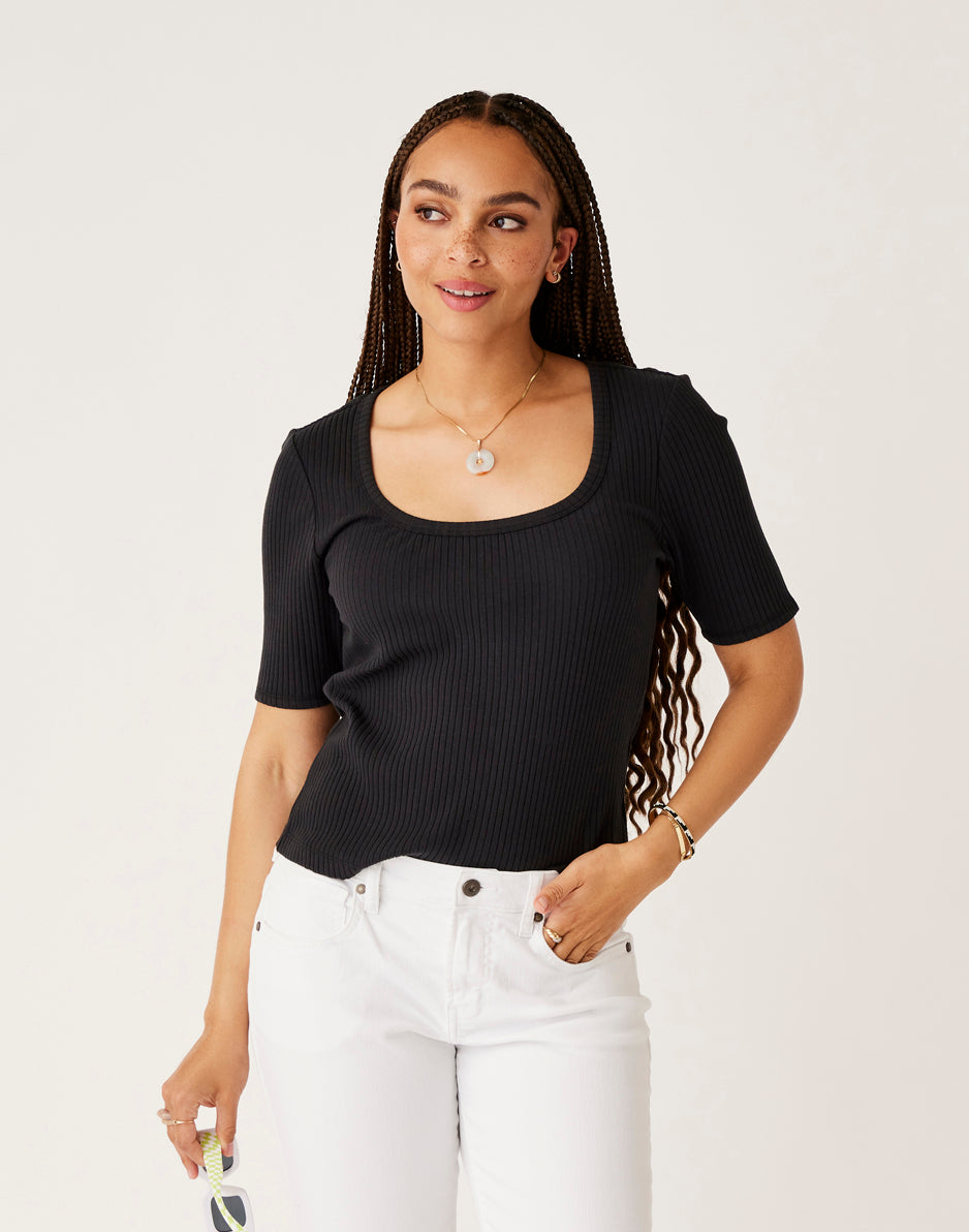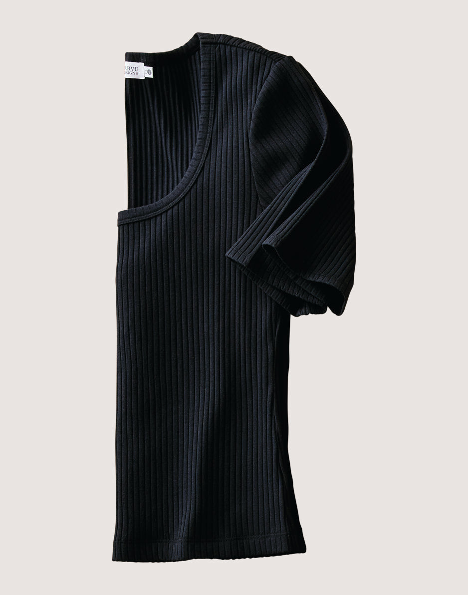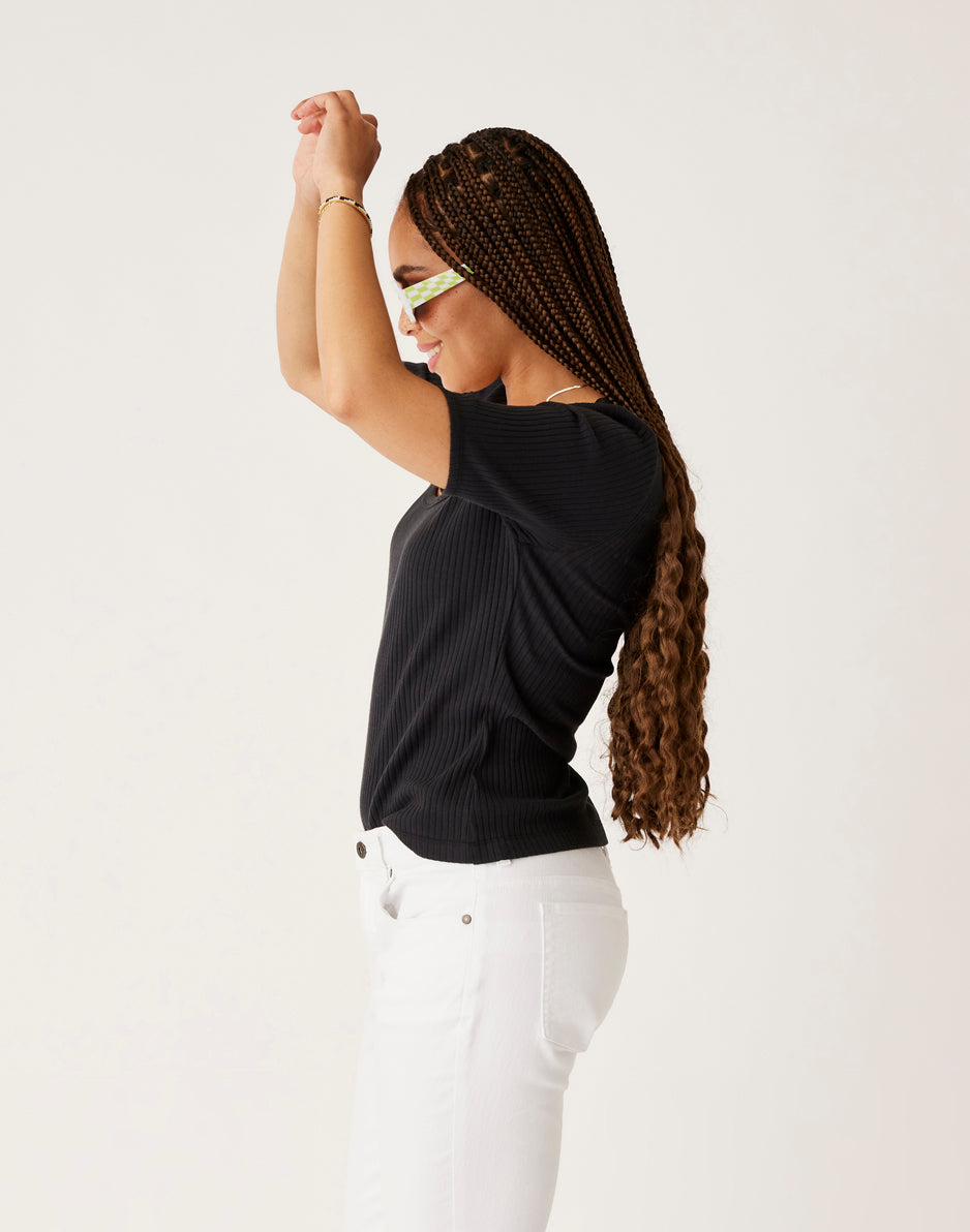 The Asher Rib Top is a simple pleasure that aims to please. Her half sleeve and perfect weight make the perfect layering piece. Which is perfect.