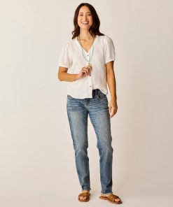 Nearly 50,000 sold. Over 500 five-star ratings. A slimmed down spin on the boyfriend cut, the best selling Carson is everything you want a good pair of jeans to be. Mid rise, relaxed with a little stretch. Wear them cuffed for a cropped length or rock the raw hem and longer inseam. *This jean is intentionally oversized. We recommend sizing down from your regular size if you like a more tailored fit. Models pictured are both wearing a size 6 jean but are regular sizes 6 and 8 so you can see the difference in fit.