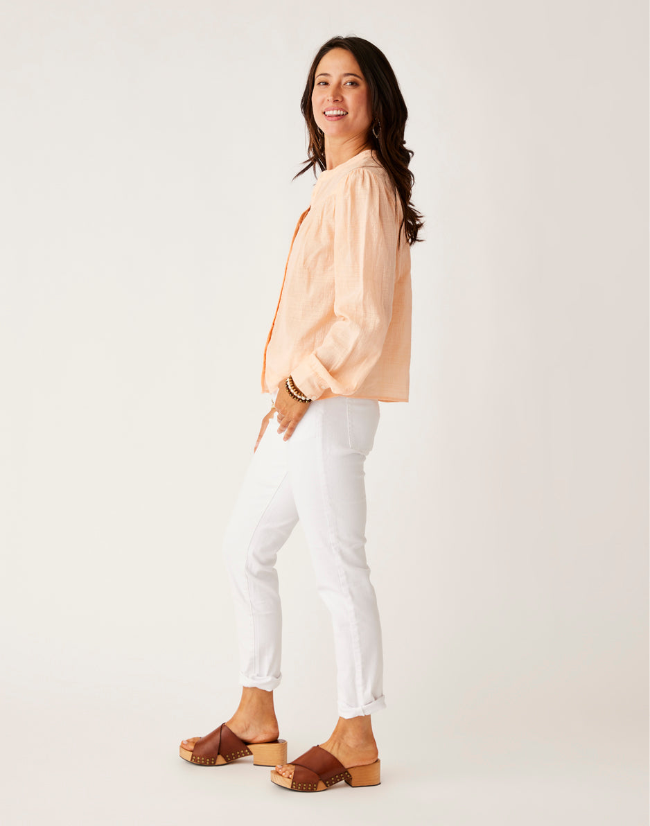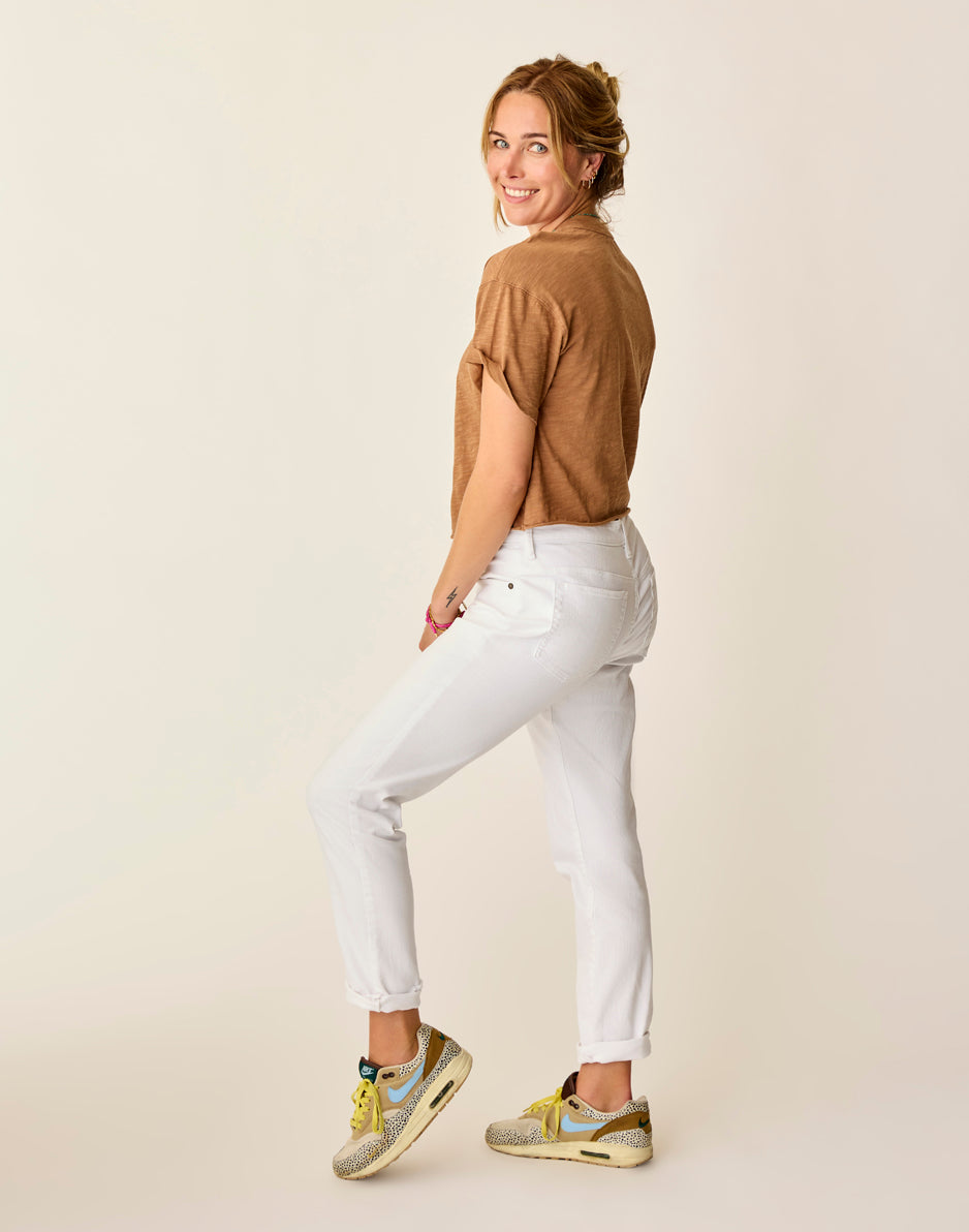 A slimmed down spin on the boyfriend cut, the Carson is everything you want a good pair of jeans to be. Sleek yet casual, relaxed with a little stretch. Wear them cuffed for a cropped length or rock the raw hem.