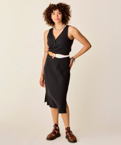 This elongating silhouette stands the test of time begging to become a summer staple. Her button placket details, 6 5/8” side slits and bra friendly disposition further push the cause.