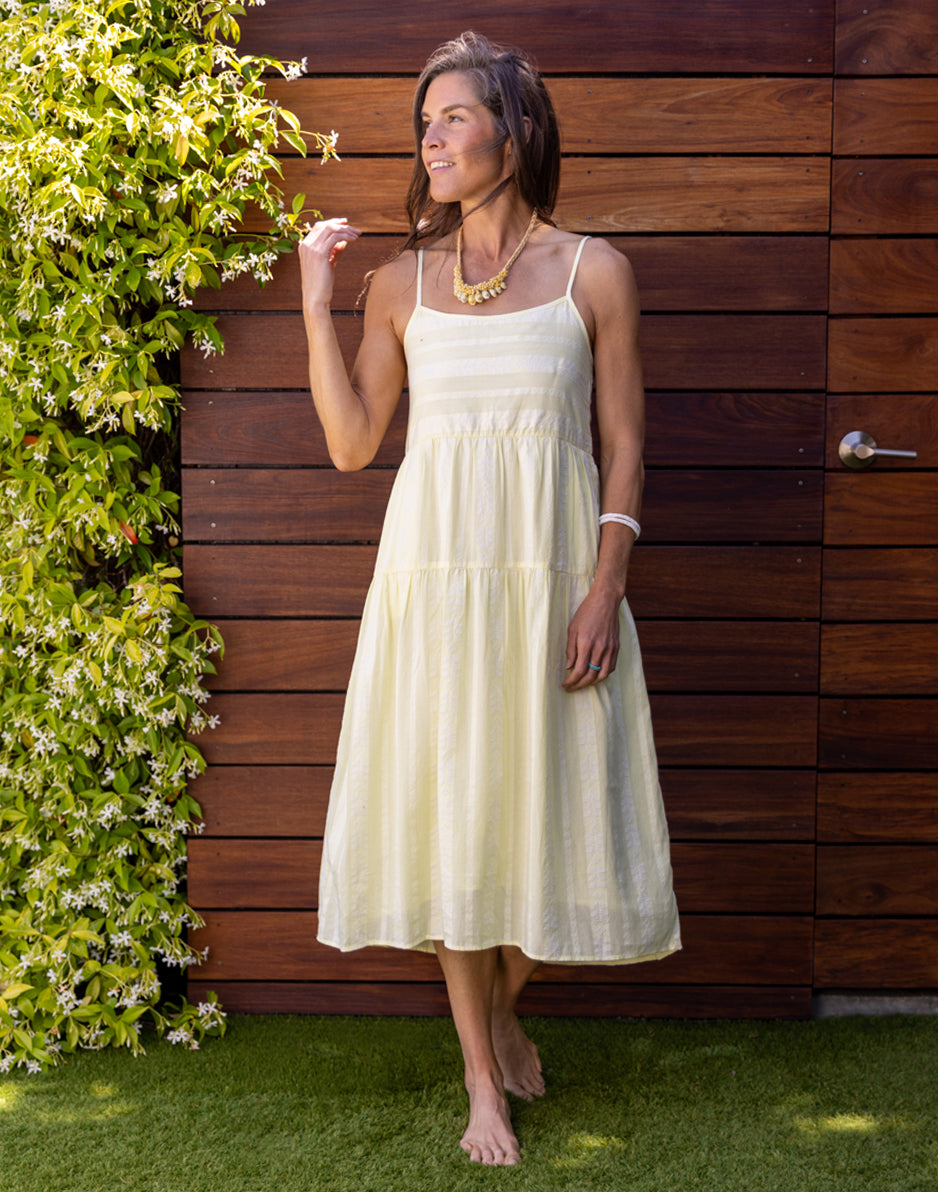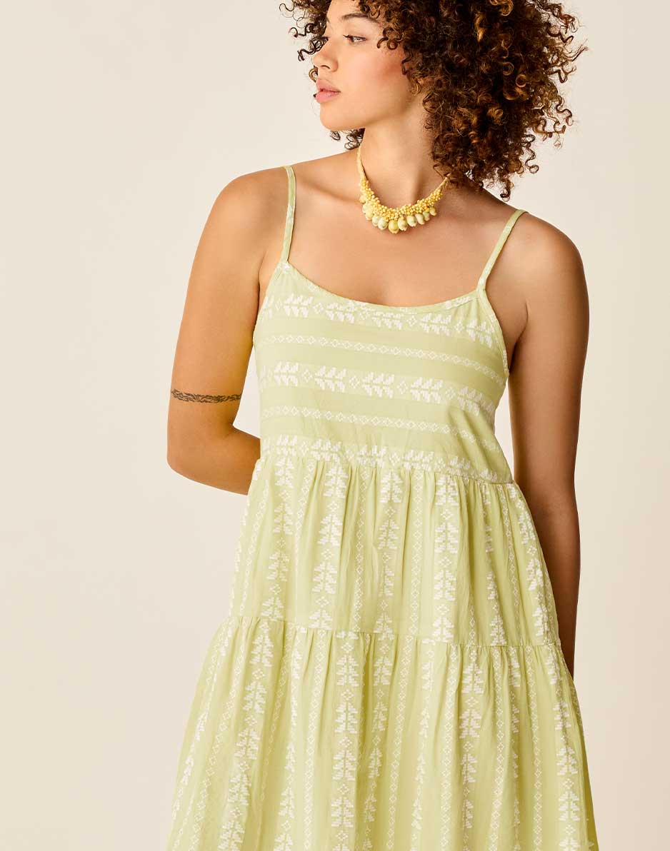 Jacey says summer at a glance thanks to her easy vibes and glorious, good looks. Her gathered tiers, side seam pockets and adjustable straps just stack the deck in your favor.