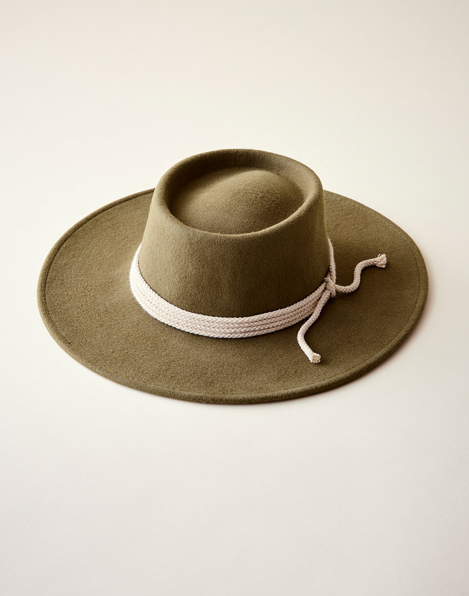The Peter Grimm Italy Hat is made from 100% Wool. This style features a Gambler Crown with a Rope Styled Band and a 4″ Brim.