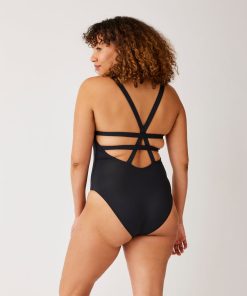 A strappy spin on that iconic lifeguard look. Flattering, flirty, and just a little nostalgic, the Malibu-ready Logan one piece features a supportive shape and subtly sexy open back.