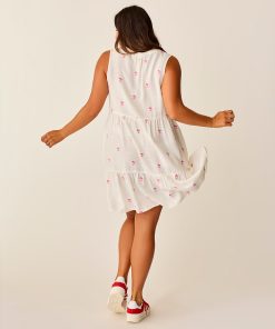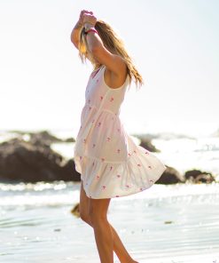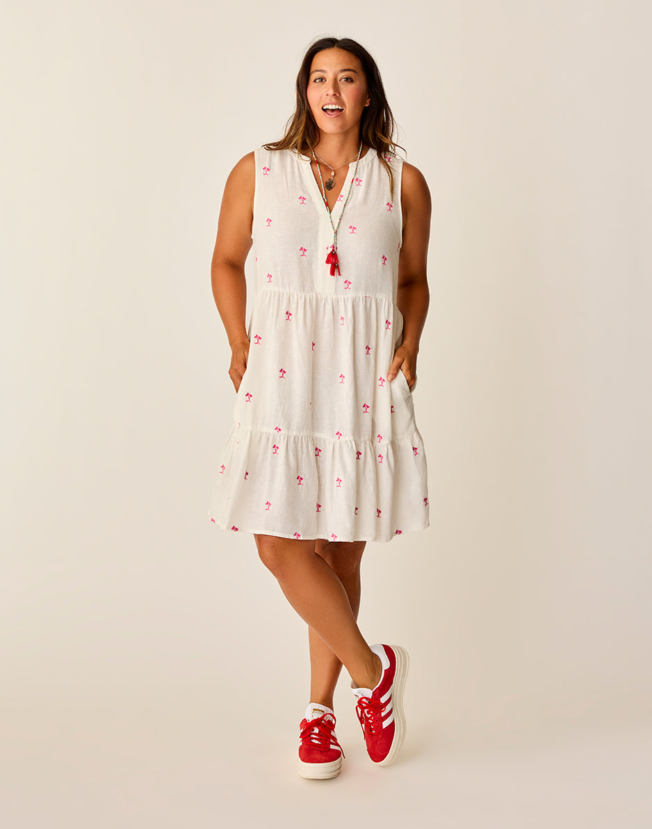 Every day feels like a vacation in this loose, light and flowy linen dress. Her captivating tiered silhouette is ready to spin, while simple side pockets await sea shells and sea glass.