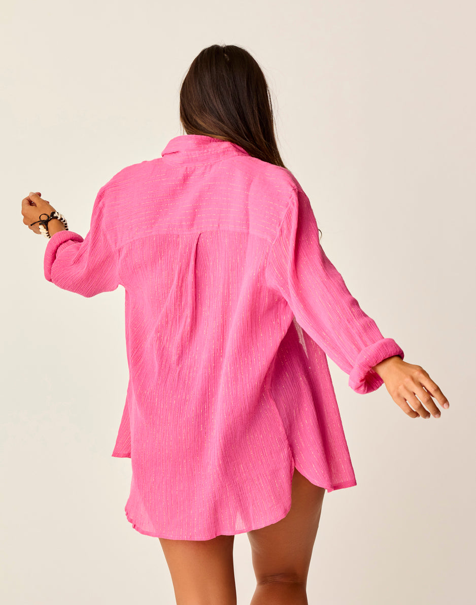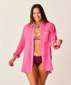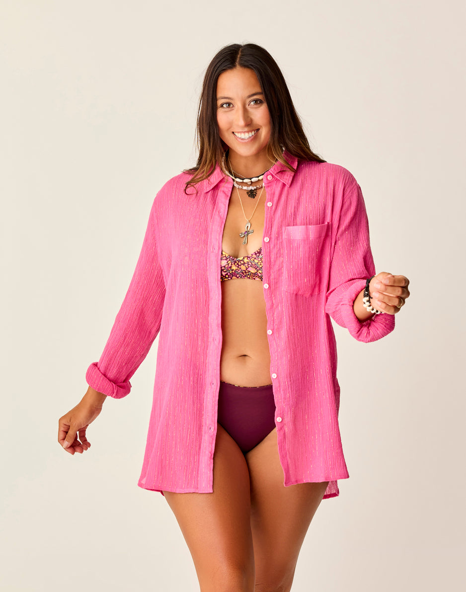 Made popular by ancient Romans for summer cocktail parties, the Taylor Gauze Tunic provides a contemporary summer staple spin, rocking a slightly off-the-shoulder, relaxed fit, plus a shirttail hem and collar & stand. Wear this as a cover up or with your favorite bottoms! This is a purposely oversized tunic. We recommend sizing down if you are looking to wear this as a shirt.