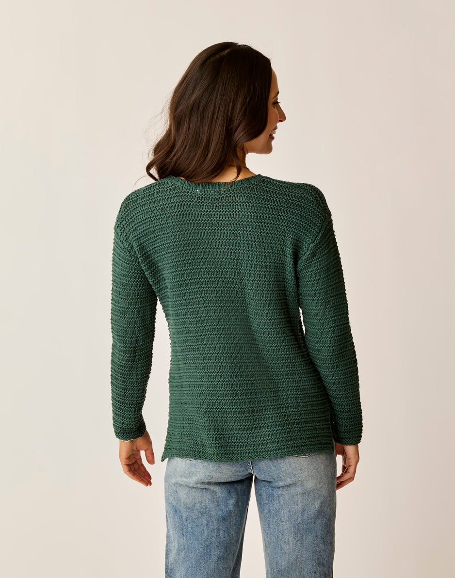 The Clarissa is that lightweight summer sweater that is just too cool for school. It’s no wonder she dropped out to follow her dreams of fame and fortune. Her crew neck, ribbon stitch, and side seam slit turn heads wherever she goes.
