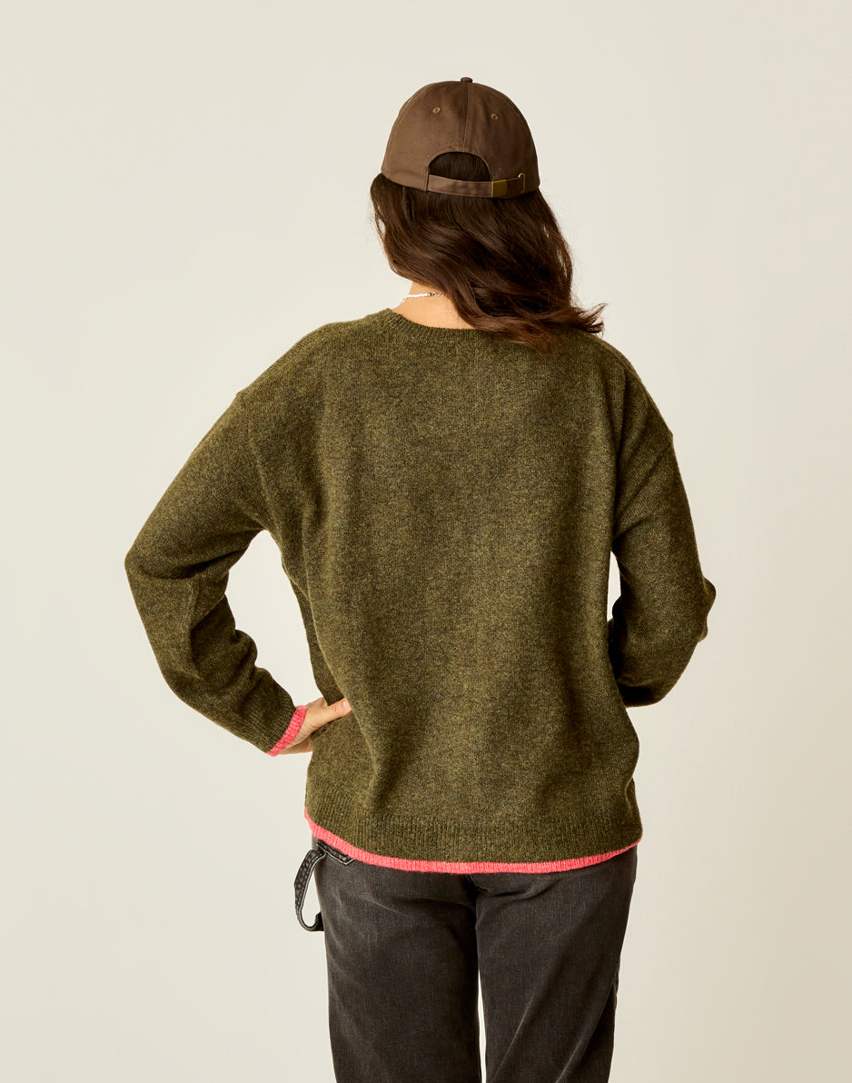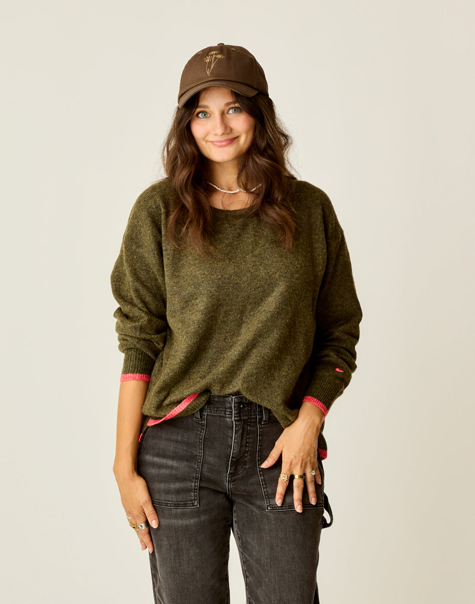 Slip into this oversized sweater, made from our infamous Fuzzy Yarn, and revel in its step hem, contrast tipping and luscious embroidery details. Adding an element of fun to this classic sweater that is a closet must-have.