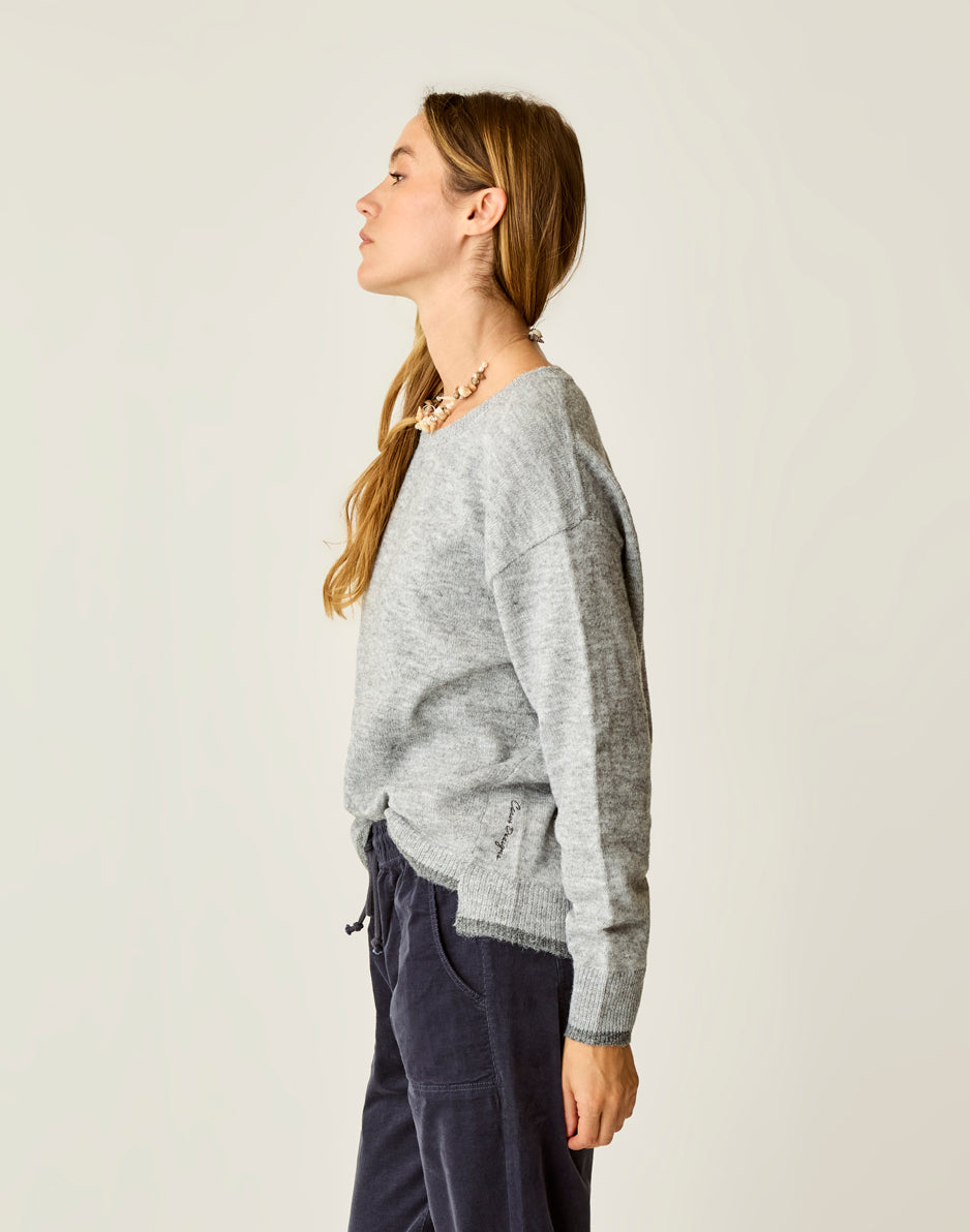 Slip into this oversized sweater, made from our infamous Fuzzy Yarn, and revel in its step hem, contrast tipping and luscious embroidery details. Adding an element of fun to this classic sweater that is a closet must-have.