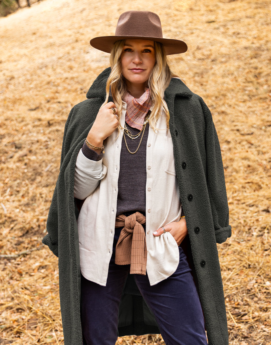 The Sutton is just easy like Sunday morning. With a cozy Boucle Fleece shell, smooth sateen lining, and side pockets, she’s the multi-season, mid-weight wonder every closet needs. Her structured relaxed fit leaves plenty of room for layering, making her as functional as she is stylish. For a slouchier fit with a hood, check out the Indy Boucle Jacket.